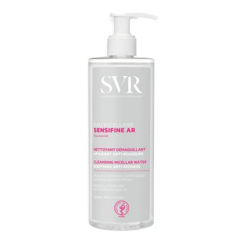 SVR Sensifine AR Eau MicellaireDescrizione Acqua micellare, struccante, detergente ad azione lenitiva ed anti-arrossamento. Ideale per pelle reattiva, soggetta ad arrossamenti, con tendenza alla rosacea. Ricco di niacinamide lenitiva per un’azione detergente e struccante. Elimina ogni traccia di make-up da viso, occhi e labbra ed è adatta anche alla pelle più sensibile. Modalità d'uso Imbibire generosamente un dischetto di cotone e lasciare in posa per qualche secondo sulle zone soggette ad arrossamento per rinfrescarle. Passare quindi delicatamente il dischetto sulla pelle di tutto il viso per rimuovere ogni traccia di trucco e impur...