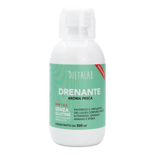 DIETALAB DrenanteDescrizione Integratore alimentare a base di estratti vegetali con edulcorante. Favorisce il drenaggio dei liquidi corporei grazie a frassino, girasole, ananas e spirea. Aroma pesca. Ingredienti Acqua; glicerolo; estratti acquosi di: frassino foglia (Fraxinus excelsior L.); girasole ligula (Helianthus annuus L.); rusco rizoma (Ruscus aculeatus L.); ananas stipite [Ananas comosus (L.) Merr.]; spirea sommità (Filipendula ulmaria L. sin. Spirea ulmaria L.); tamarindo frutto (Tamarindus indica L.); equiseto erba (Equisetum arvense L.); finocchio frutto (Foeniculum vulgare Mill.); anice verde frutto (Pimpinella anisum L.); a...